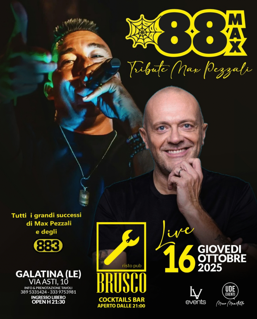 Giovedì 16 ottobre da Brusco si canta a squarciagola con 88MAX, il tributo ai grandi successi di Max Pezzali e degli 883!