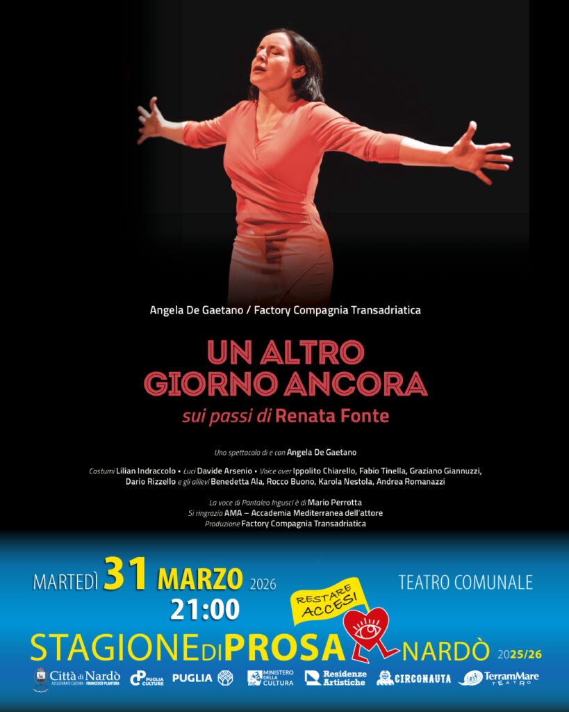 La 16ª Stagione teatrale del Teatro Comunale èfrutto della collaborazione tra il Comune di Nardò e Puglia Culture con TerramMare Teatro e prosegue fino ad aprile.