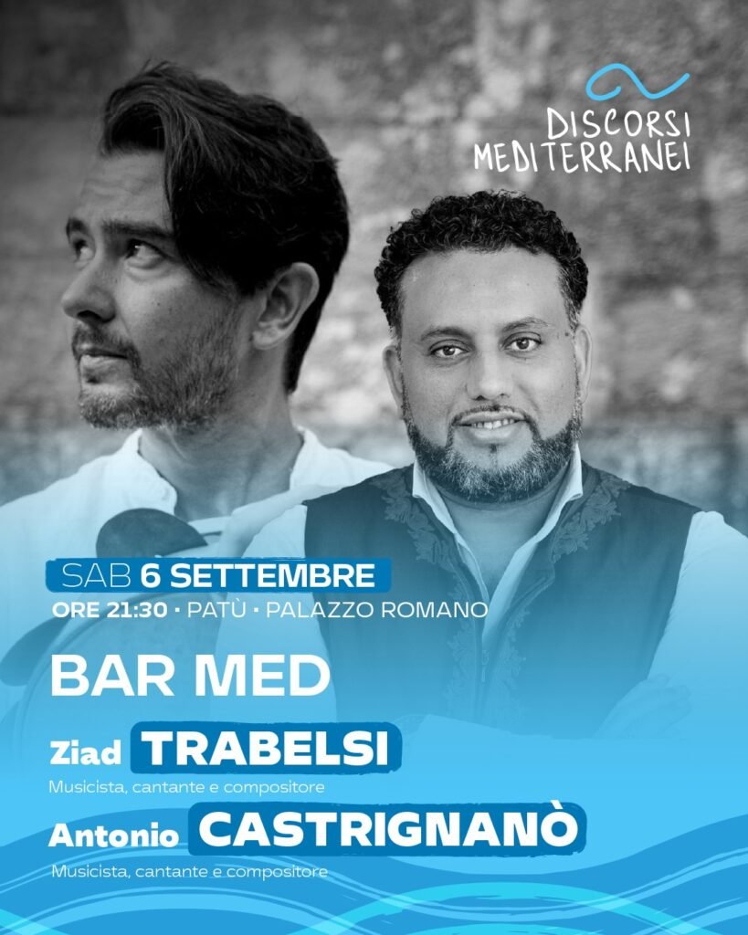 Il 𝟲 𝘀𝗲𝘁𝘁𝗲𝗺𝗯𝗿𝗲, a Patù, Discorsi Mediterranei ospiterà 𝗕𝗔𝗥 𝗠𝗘𝗗, progetto musicale nato dalla collaborazione tra Antonio Castrignanò e Ziad Trabelsi