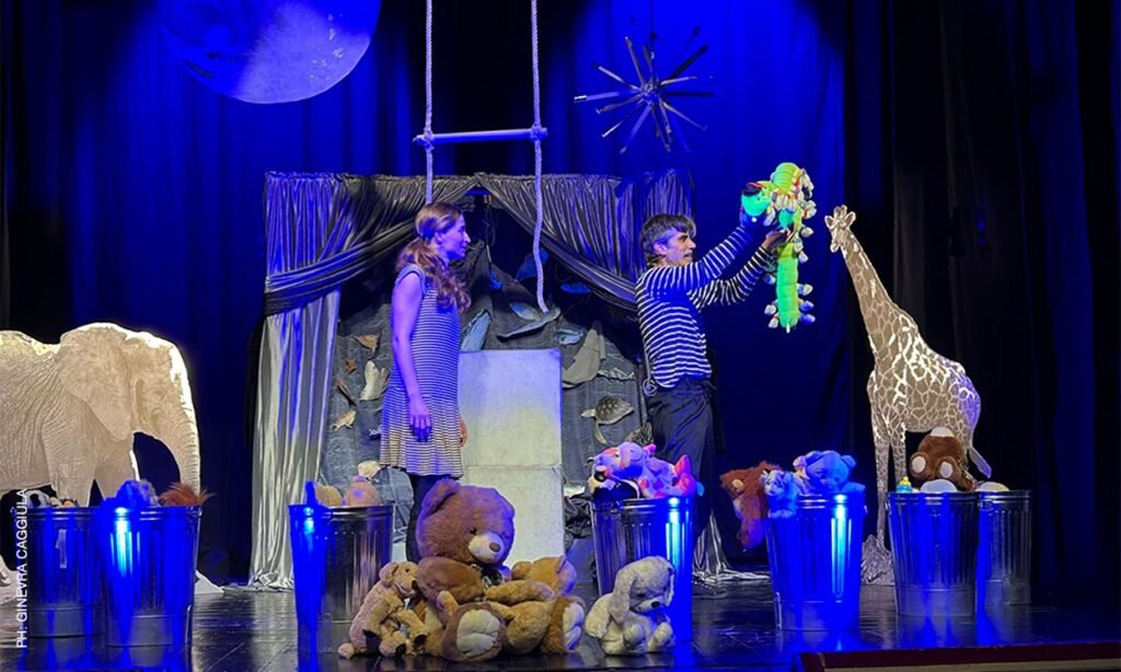 Due fratellini, sempre pronti a bisticciare, si ritrovano all’improvviso coinvolti in un’avventura straordinaria: una piccola farfalla, entrata nella loro stanza, affida loro una missione urgente. Salvare quanti più animali possibile dal grande temporale che sta per sommergere l’intera Terra. Per riuscirci, basterà trasformare per una notte la cameretta in un’enorme imbarcazione chiamata Arca – proprio come fece, tanto tempo fa, un vecchio signore dalla lunga barba bianca, che aveva più di seicento anni – e offrire rifugio ai poveri animali impauriti. Accantonando i continui contrasti, i due protagonisti condivideranno fianco a fianco un viaggio indimenticabile. Uno spettacolo sospeso tra sogno e realtà, ricco di suggestioni musicali e di piccole storie che raccontano il valore dell’acqua, elemento essenziale per ogni forma di vita. Un racconto che parla ai più piccoli con un linguaggio semplice, ironico e poetico, e allo stesso tempo ricorda agli adulti che l’acqua va rispettata, protetta e amata. Dopo Rifiuto, il lavoro precedente dedicato alla raccolta differenziata e al problema dei rifiuti abbandonati, TerramMare Teatro torna ad affrontare un tema delicato e urgente: la tutela di uno dei beni più preziosi della natura.