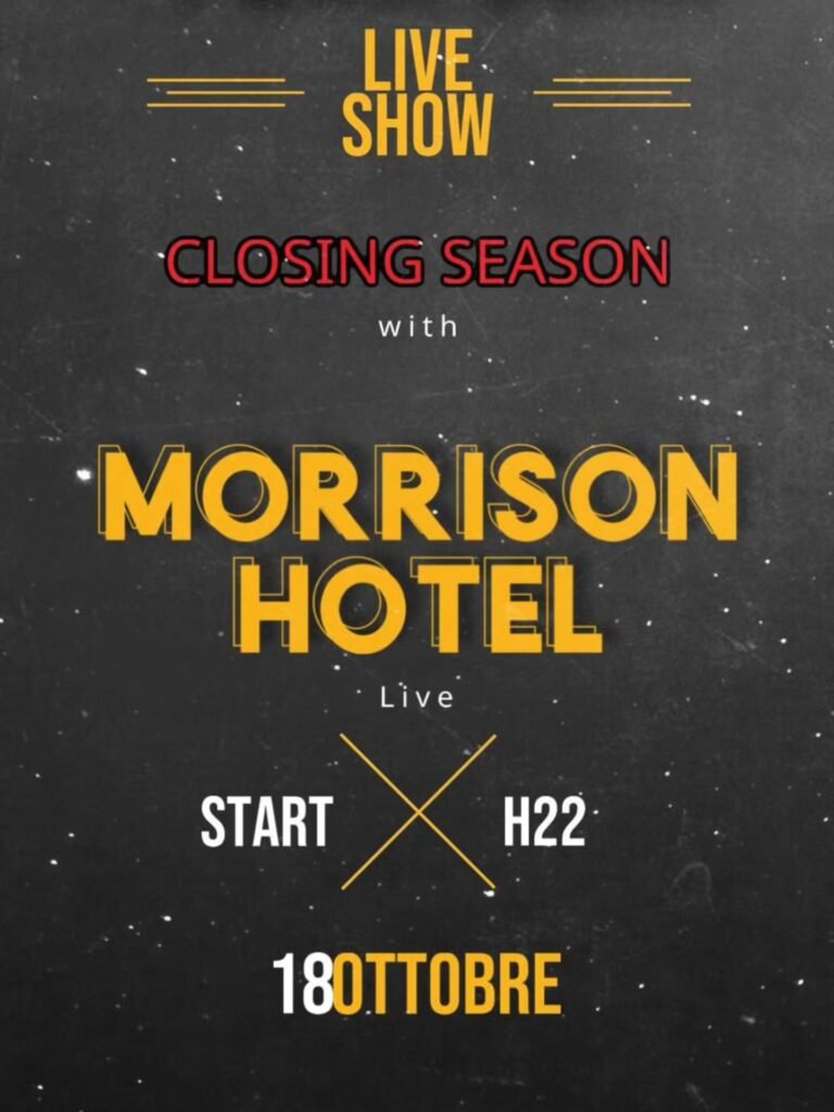 Sabato 18 Ottobre – Closing Season con i Morrison Hotel (tribute ai The Doors)