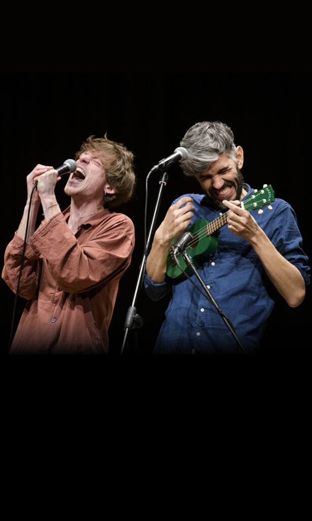 Che ruolo ha il lavoro nelle nostre vite? È solo una parte dell’esistenza o la nostra identità intera? Per la nostra generazione, i confini tra lavoro e vita privata sono sempre più sfumati. Il lavoro ci definisce, ci occupa costantemente, fino a diventare una forma di autosfruttamento invisibile, ma pervasiva. Il capo di Lorenzo Maragoni si chiama Lorenzo Maragoni: esigente, reperibile sempre, anche di sera, anche nei bar. Lorenzo ama se stesso, ma solo come collega. Si incontra solo in contesti lavorativi: pranzi, pause, aperitivi di lavoro. Il capo di Niccolò Fettarappa si chiama Niccolò Fettarappa: indulgente e tiranno insieme, oscillante tra ambizione e indolenza. L’azienda “Fettarappa” è in bilico tra il desiderio di successo e la voglia di dormire. In scena, Niccolò e Lorenzo parlano dei loro capi: loro stessi. Vincitore della menzione speciale Forever Young 2021/2022, lo spettacolo prodotto dalla compagnia Corte Ospitale di Rubiera (Reggio Emilia), affronta con lucidità e sarcasmo il legame tra lavoro e felicità, chiedendosi cosa resti di noi fuori dall’orario d’ufficio. Lorenzo Maragoni e Niccolò Fettarappa si incontrano nel 2021 alla scuola di drammaturgia Scritture, condotta da Lucia Calamaro. Nell’ottobre dello stesso anno iniziano a condurre il laboratorio. Vale tutto a Carrozzerie n.o.t. Solo quando lavoro sono felice (una conversazione sulla disperazione) è il loro primo spettacolo insieme.