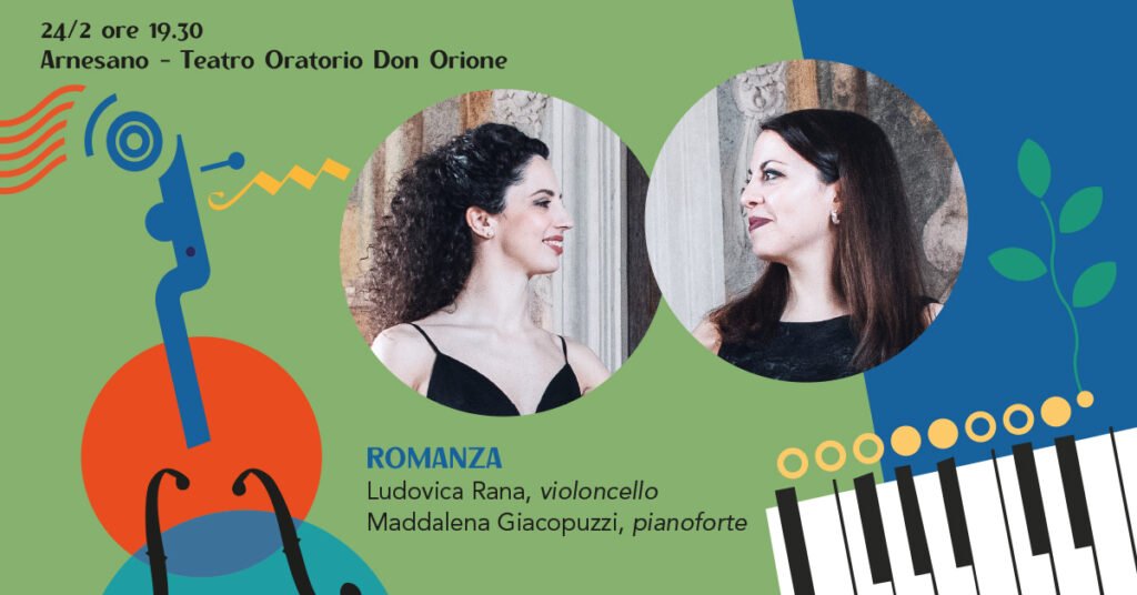 Sul palco del Teatro “Oratorio Don Orione” di Arnesano (Le) torna l’ormai immancabile duo composto da Ludovica Rana, violoncello, e Maddalena Giacopuzzi, pianoforte. Così per la sesta Stagione Concertistica di Opera Prima realizzata dall’omonima associazione musicalecon il contributo del Ministero della Cultura e il sostegno della Regione Puglia. L’appuntamento è per sabato 24 febbraio, alle ore 19.30 (biglietto 7 euro, per info e prenotazioni3274562684, www.associazioneoperaprima.com). Quest’anno Rana e Giacopuzzi propongono “Romanza”, un repertorio variegato che va da Strauss a Zemlinsky passando per Dvorak.