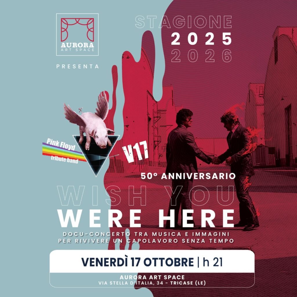 Aurora Art Space riapre le porte con un evento speciale per celebrare i cinquantโ€™anni di uno degli album piรน iconici della storia del rock. Un viaggio sonoro e visivo attraverso le atmosfere uniche dei Pink Floyd, con esecuzioni fedeli e proiezioni immersive che riportano sul palco tutta la magia di Wish You Were Here.