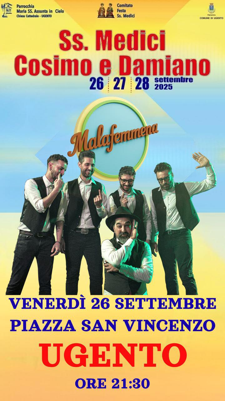 In occasione dei festeggiamenti in onore della nostra patrona, 𝐌𝐚𝐝𝐨𝐧𝐧𝐚 𝐝𝐞𝐥𝐥𝐞 𝐆𝐫𝐚𝐳𝐢𝐞, il 𝗖𝗼𝗺𝗶𝘁𝗮𝘁𝗼 𝗙𝗲𝘀𝘁𝗲 è lieto di invitarvi al concerto di: 𝐑𝐎𝐍 Data: Martedì 9 Settembre Luogo: Piazza della Repubblica– Sannicola Un appuntamento speciale per vivere insieme una serata di musica e tradizione, celebrando la nostra comunità e la devozione verso la patrona. L’ingresso […]