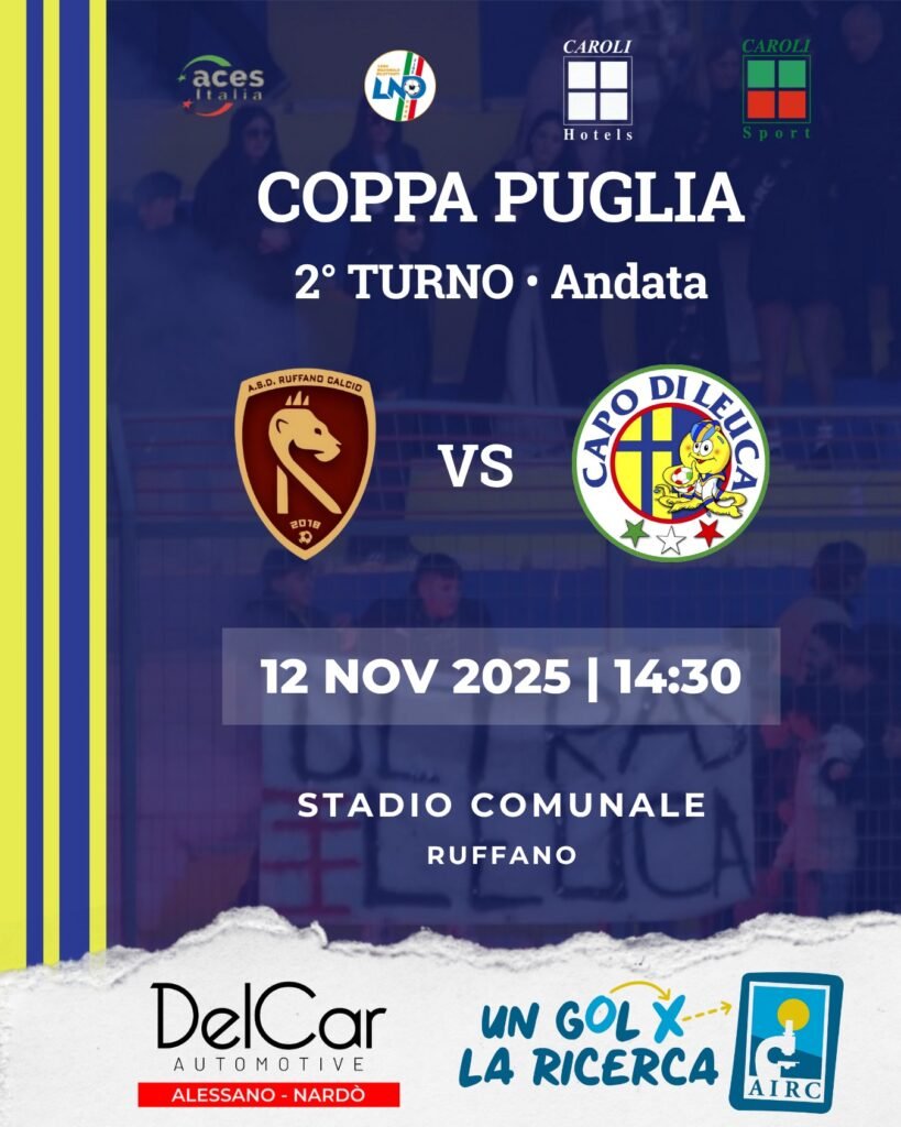 andata secondo turno coppa Puglia – calcio d’inizio h 1430 – Ruffano (LE) 12/11/2025