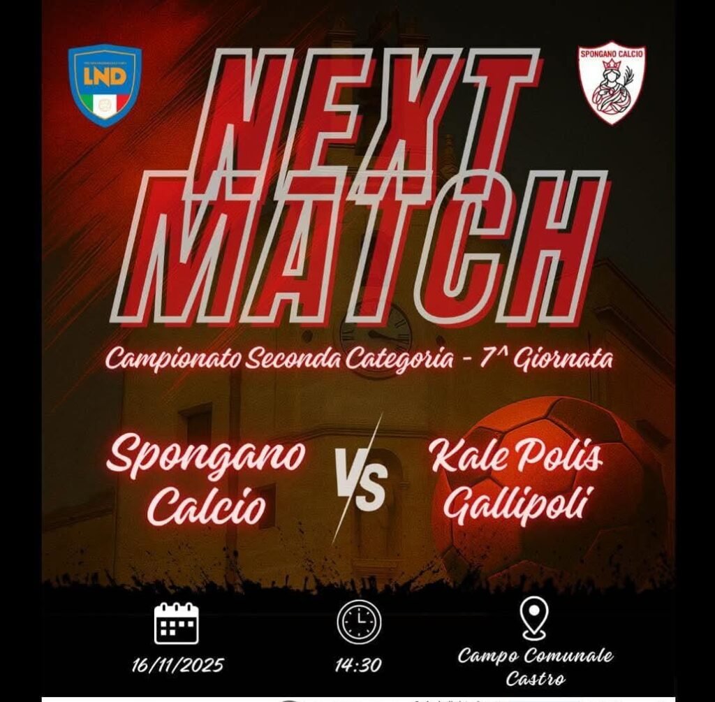 settima giornata campionato seconda categoria Puglia – calcio d’inizio 14:30 Castro (LE) 16/11/2025